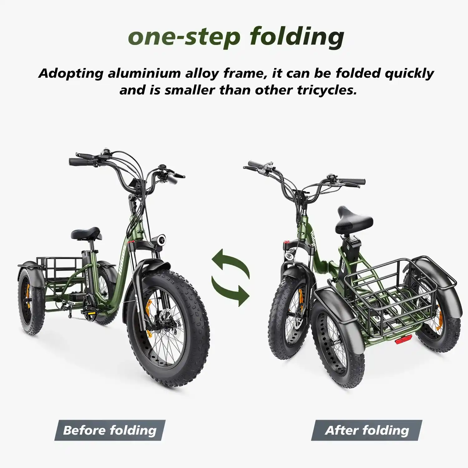 Safety is never overlooked. The trike supports a maximum load of 150 kg (330 lbs), making it suitable for carrying groceries, cargo, or even a child seat. It also comes with front and rear baskets, a charger, and essential tools, so you’re ready to ride right away.